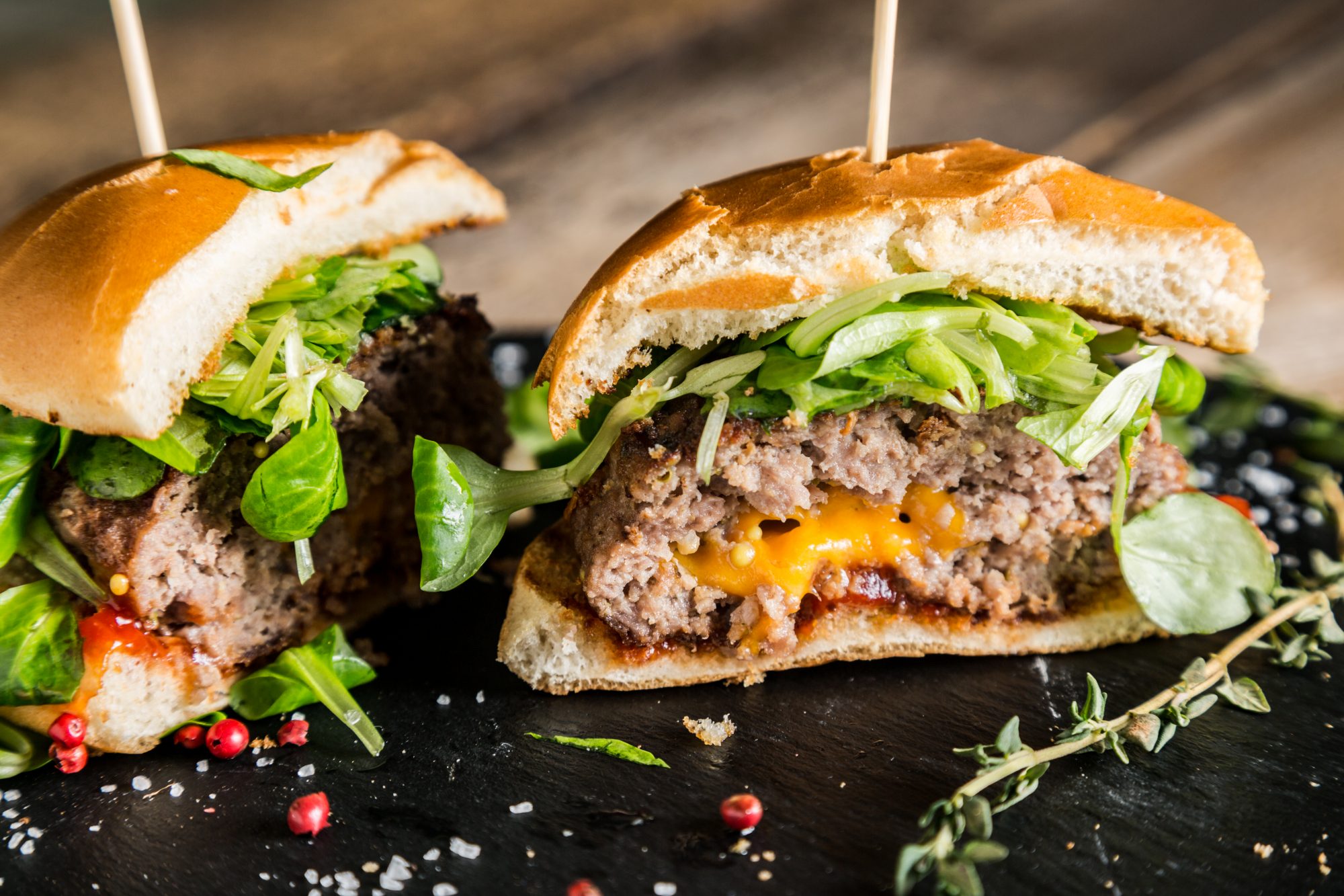 Vous ne voudrez plus d'un burger régulier une fois que vous aurez goûté un burger farci. Garni de l'une de nos délicieuses garnitures comme Canneberge et Orange ou la Confiture d’oignons