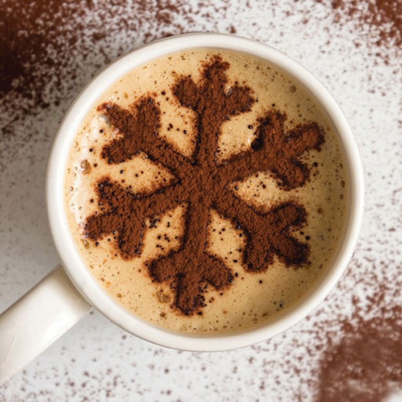 Stencil the top; Use our stainless stencils to decorate the top of your Hot chocolate with cocoa or icing sugar.