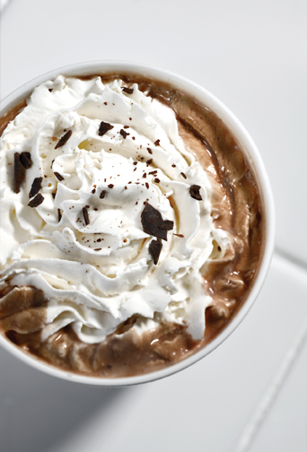 Frosty Mint; take our Candy Cane Hot Chocolate, mix with milk instead of water, top with whipped Cream and sprinkle broken candy cane bits on top.
