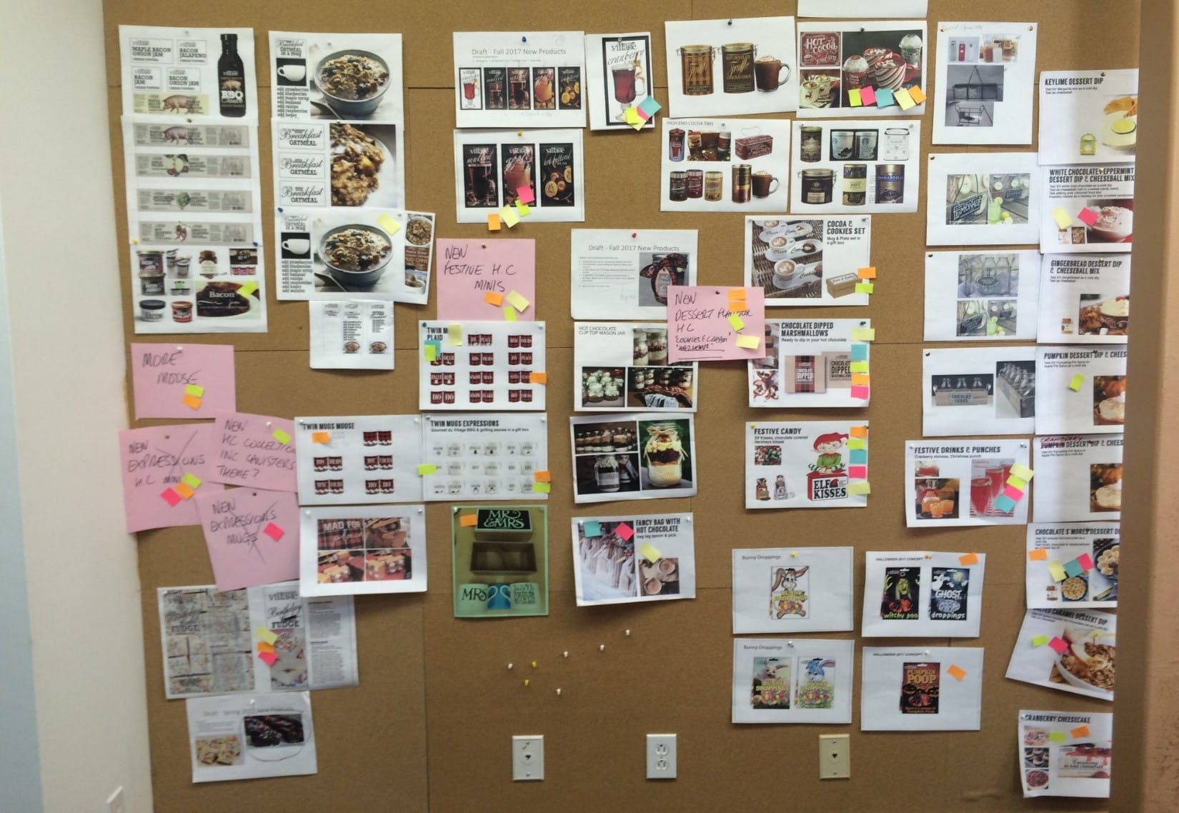 We begin the process of creating new products and packaging more than a year in advance, in the fall, 15 or so months in advance we go out making store checks to see what’s out there, what’s trending, what’s selling, we travel in Canada, the USA and Europe, over recent years these have included London, Paris, Barcelona, Vienna and Edinburgh, some of the European Christmas markets are treasures for ideas and styles. Another very important tool for trends and what consumers are enjoying is Pinterest, ‘this is a daily tool for me’ quotes Mike who has 1000’s of pins on his personal pages all around the themes of Gourmet du Village. Then its into the studio to create preliminary concept sheets, to test ideas, to try get something down on paper to share and discuss, we prepare new product lists sitting down with our Marketing and Sales teams to get their feedback and input.