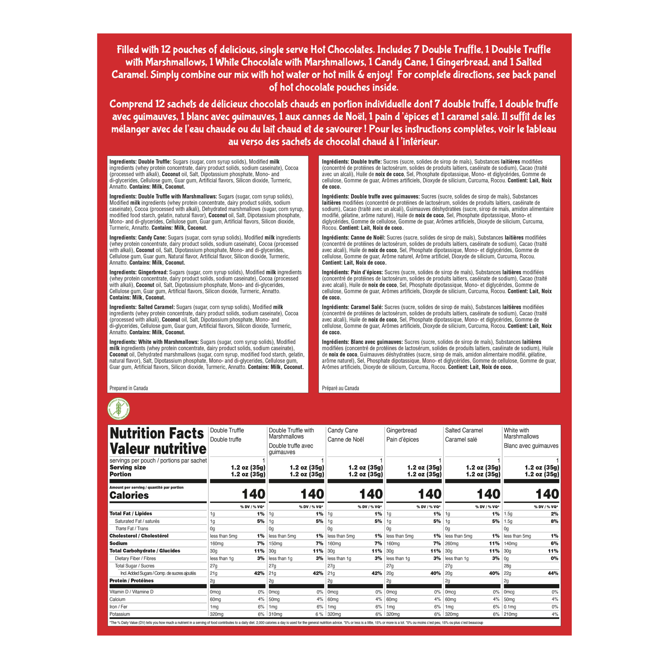 Adorned with Christmas graphics, this book-style gift box opens to reveal 12 window tabs, one for each of the 12 Days of Christmas for a sweet Christmas countdown or to celebrate the 12 Days of Christmas. Peel back the tabs each day to reveal which hot chocolate to find and enjoy!