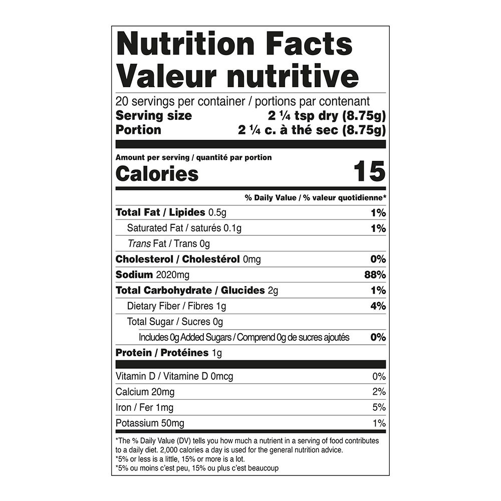 Large format, new packaging of our best selling seasonings. The blends your customers know and love, now in a recyclable card container with reclosable lid. The canisters are aluminium foil lined to provide a long shelf life for the seasonings which also come in a sealed protective pouch for double protection against moisture. Canister Dimensions: 11 cm H x 8.3 cm D