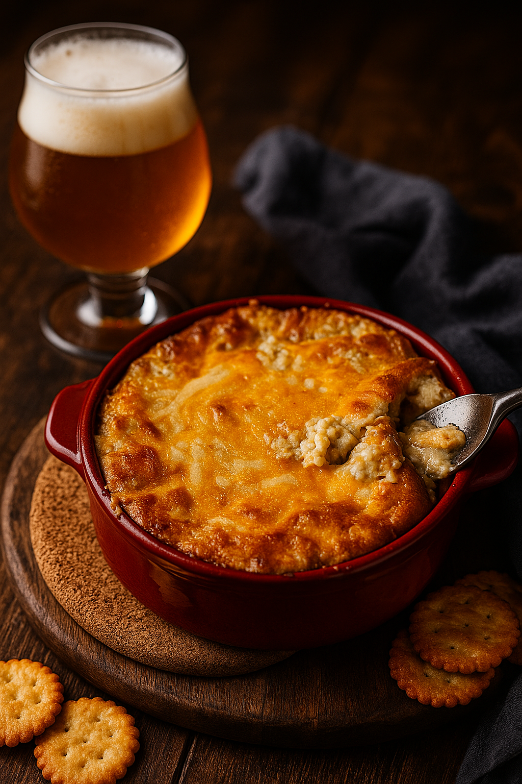 A rich, cheesy dip with a subtle tang from beer, perfect for pairing with salty, crunchy sides like pretzels, bagel chips, or pita chips. Just as good with chunks of pretzel bread or crusty sourdough for dipping. Easy to prepare using simple fridge and pantry ingredients, this warm, crowd-pleasing dip comes together quickly and is ready to serve straight from the oven. Ideal for entertaining or casual get-togethers.