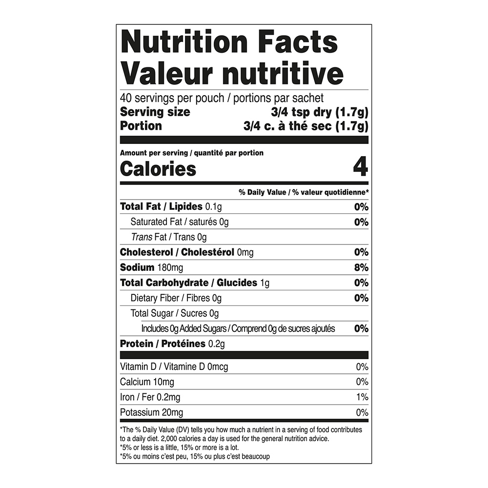 Net Weight 70g (2.4oz). Makes 40 portions.