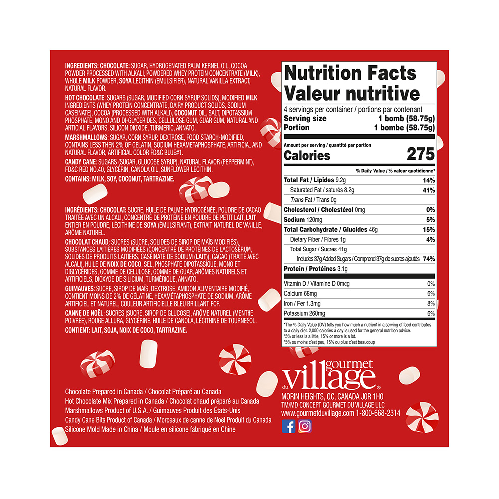 DIY Kit that contains everything needed to make 4 Milk chocolate Bombs featuring Candy Cane Hot Chocolate with Candy Cane bits.