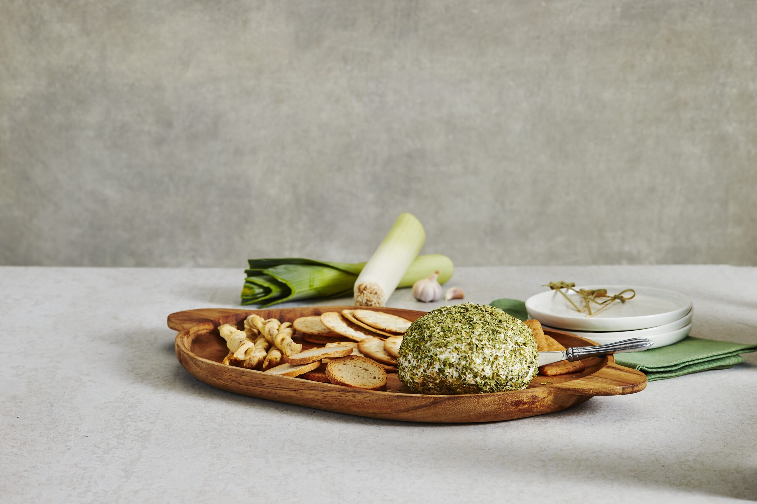 Rich, smoky cheese flavor is balanced with the savory tang of garlic in this crowd-pleasing cheeseball mix. Prepare by mixing with cream cheese, then coat with the included minced dried leek flakes for a subtle, onion-like finish and layered flavor.