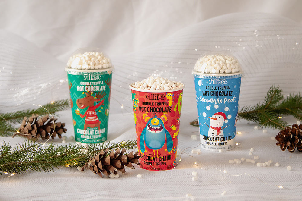 This attractively decorated recyclable card cup contains a matching single serve mini of Double Truffle Hot Chocolate, and comes topped with a clear plastic dome full of mini dehydrated marshmallows. Convenient and fun to enjoy, simply tear open the pouch, pour the contents into the cup, and mix with hot water or hot milk. Top with marshmallows, and indulge in the rich, creamy hot chocolate taste. Great to give as a party favor, or makes a wonderful gift for teachers.