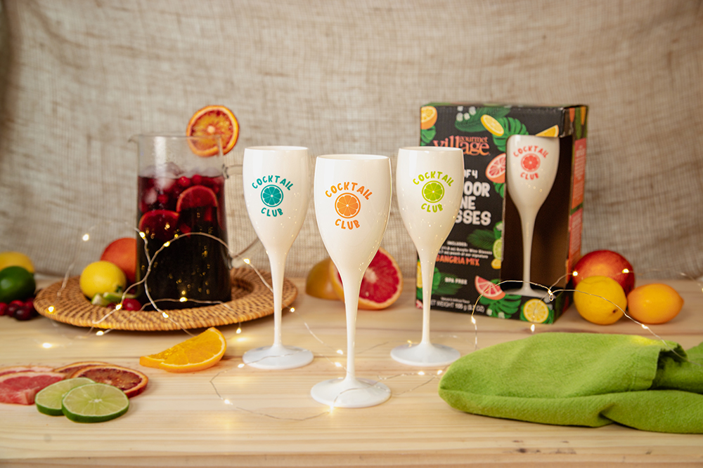 Join our Cocktail Club with these elegant, unbreakable wine glasses and signature Sangria Mix. These long-stemmed white acrylic glasses are perfect for enjoying chilled drinks on the patio! Not only are they sophisticated enough for guests, they are made of durable, BPA-free acrylic that is safe to use inside, outside or around the pool.