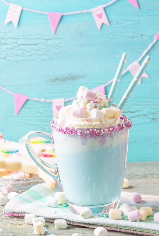 An ocean blue Shark with big teeth and a friendly smile, filled with color-changing hot chocolate. Add hot water or milk to our white hot chocolate mix and watch it turn ocean blue.