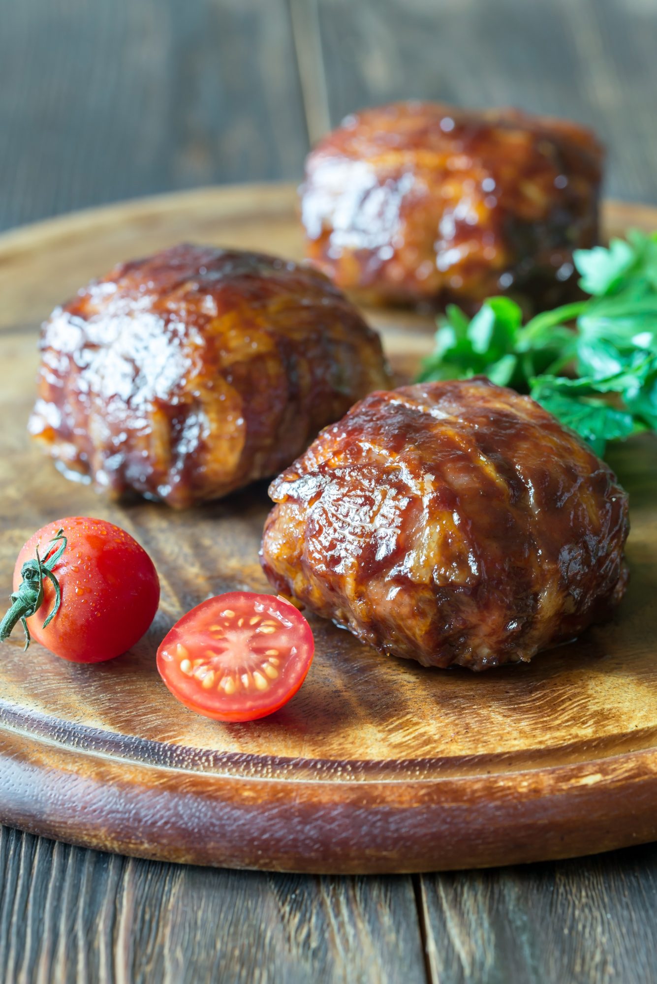 Divide into 4 portions, shaping each one into the shape and size of a large baked potato; wrap a strip of bacon around each, ends tucked under.
