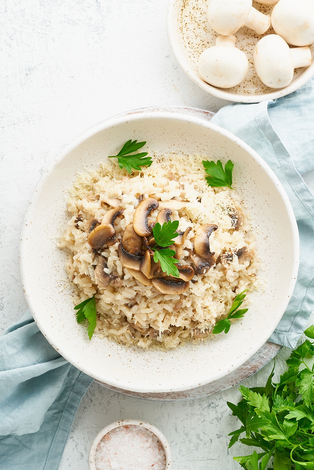 Our Cheddar Onion Dip also makes a delicious Cheddar Onion Risotto with Mushrooms.